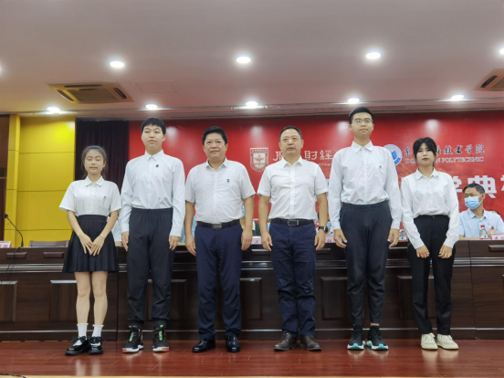 广东财经大学校党委常委、副书记刘祖华对东职院在协同育人项目上给予的支持表示衷心感谢,并强调两校协同培养人才,是为了更好的培育符合经济社会发展需要、培养全面拥有本科综合素质和高端技术技能应用型人才而推出的一项重要举措。同时向新生们提出殷切希望:一是传承历史印记,厚植家国情怀;二是蓄满奋进能量,成就栋梁之才;三是坚持崇德向善,永葆阳光心态。