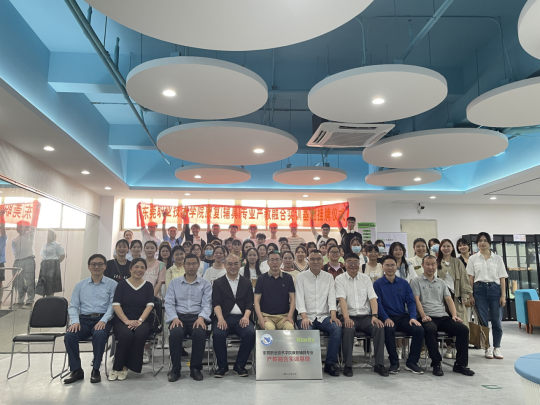 随后,双方代表在康复辅助器具中心大厅举行揭牌仪式,校企双方代表合影留念。