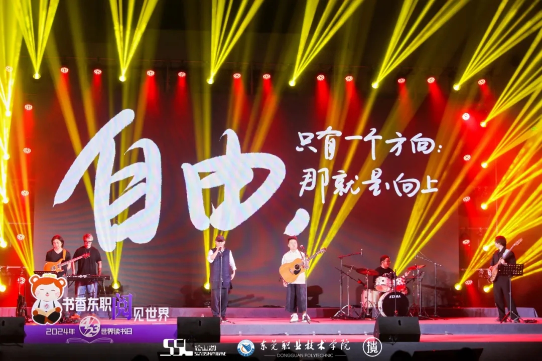 4月21日,由我校与松山湖管委会联合主办,松山湖宣传教育文体旅游局、校团委、校图书馆和松山湖图书馆承办的东职读书音乐唱享会暨4·23世界读书日活动开幕式在我校体育馆举行。我校党委书记司琪,美国肠胃肝胆专科学院院士张全亮教授,东莞市肝胆医院党总支书记王三贵,东莞图书馆馆长冯玲,松山湖宣传教育文体旅游局二级主任科员王润妃,东莞市各高校图书馆及镇街公共图书馆领导及我校相关部门领导出席活动。活动特邀不也乐队与我校师生共话阅读与音乐,青春与未来。