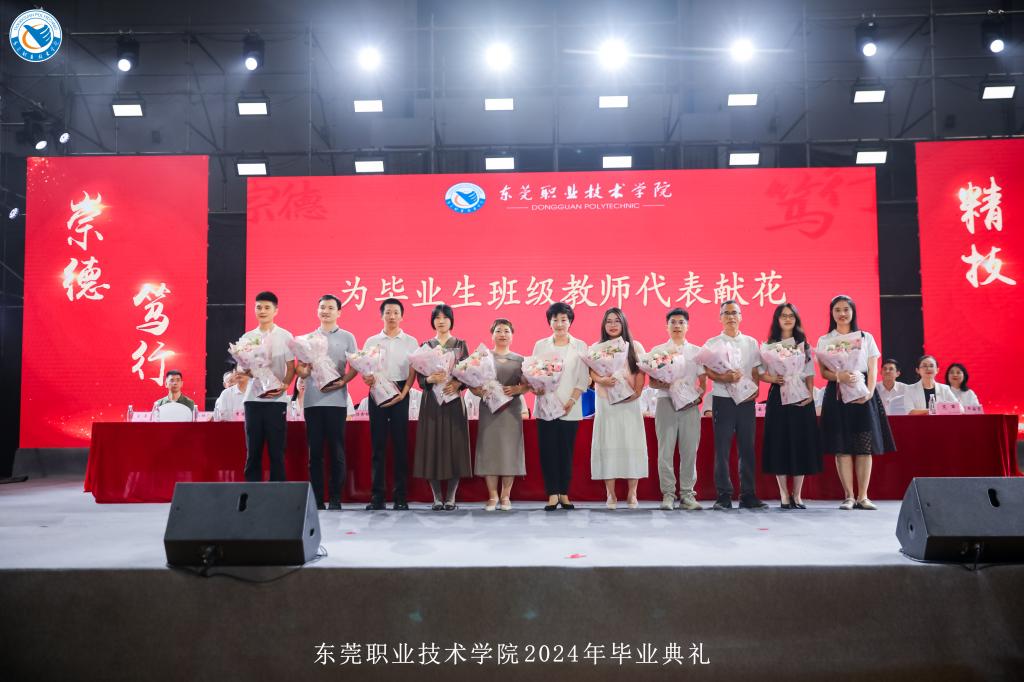 毕业典礼在庄严的国歌声中拉开了序幕。数字媒体学院陈可代表毕业生发言,她向母校和所有老师的辛勤培育表达了深深的感谢,表示以不懈的努力和汗水,书写自己独特的人生篇章,以实际行动展现作为东职人的拼搏精神和不懈追求。随后,毕业生代表为辛勤耕耘的毕业班优秀教师代表和默默付出的后勤工作人员献花,感谢他们的谆谆教导和辛勤付出。