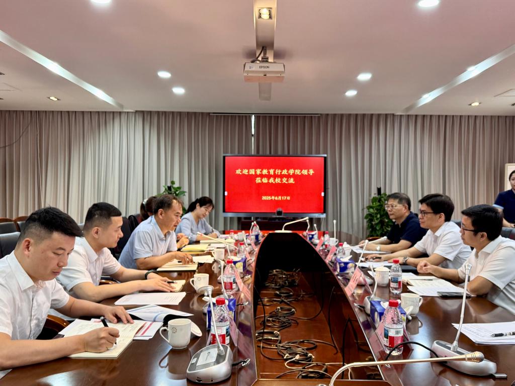 6月17日,国家教育行政学院远程培训部主任姜永平一行来学校,围绕教育干部网络培训平台建设、优质课程资源共享机制、培训基地共建合作模式等专题开展调研与交流。我校党委副书记、纪委书记蔡东宝接待了来宾,人事处、继续教育学院、国际交流学院等有关部门负责人参加会议。