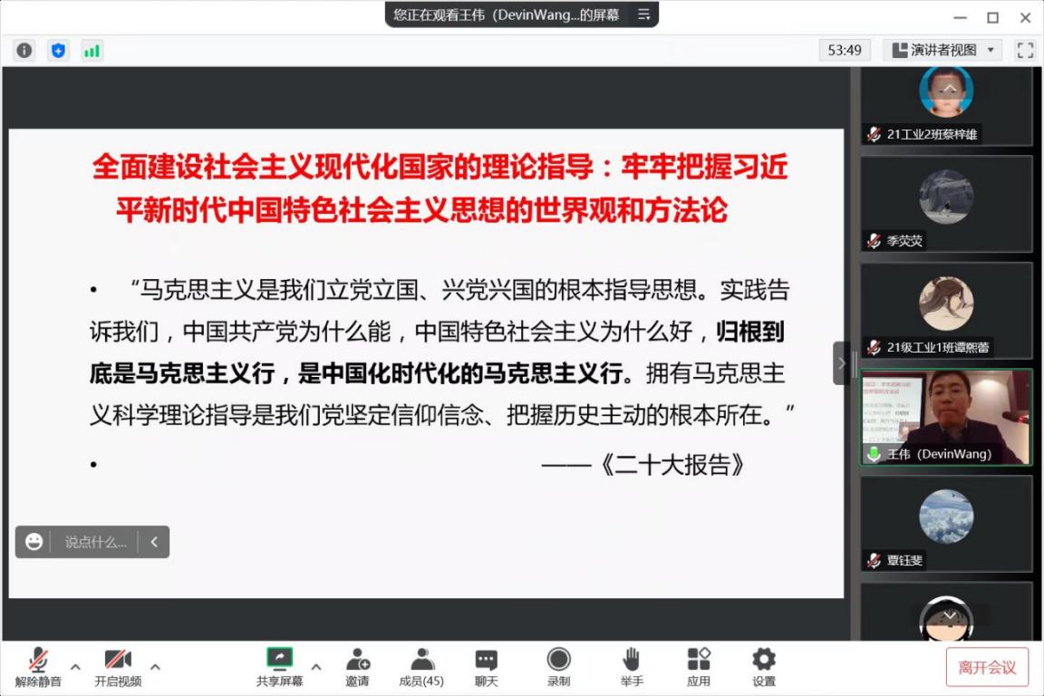 宣讲会上,王伟博士围绕“奋力谱写全面建设社会主义现代化国家新篇章——学习党的二十大精神”主题,详细解读了党的二十大精神的丰富内涵,特别对“增进民生福祉,提高人民生活品质”方面谈了自身的成长体验,感慨学校发展给师生带来的幸福感。王伟博士深入简出地阐释了党的二十大精神,并引发听众共鸣产生反思,内容丰富、令人鼓舞,催人奋进。