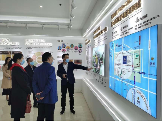 东莞松山湖金融谷投资有限公司侯康总经理带领大家参观了跨境电商产业园的展厅与配套的实训条件,介绍了打造跨境电商主题产业园的理念与建设思路。东莞在一起电子商务有限公司林镜福总经理介绍了公司在产教融合方面与我校商务英语专业所做的合作。
