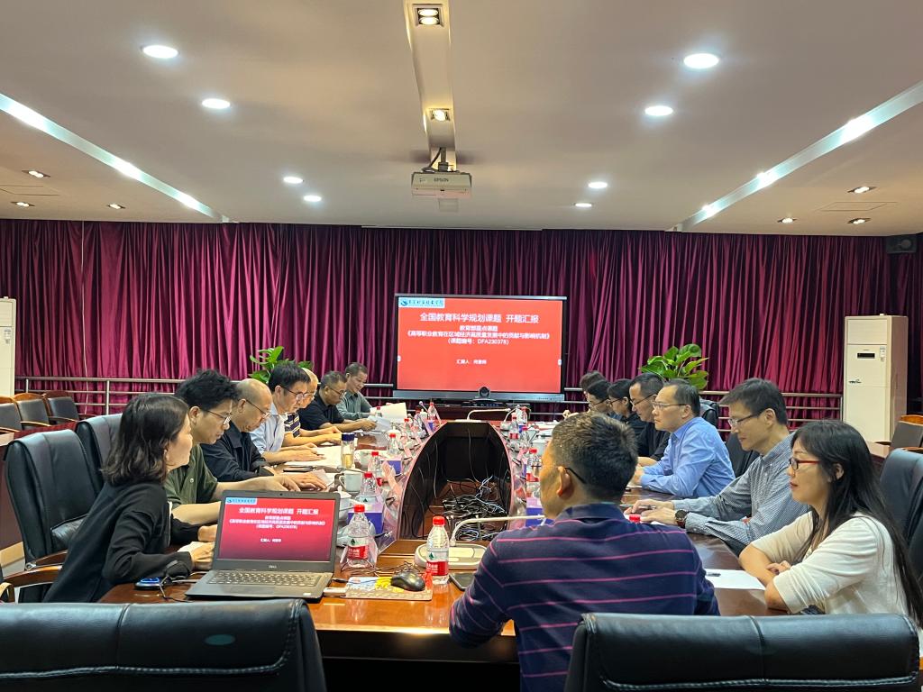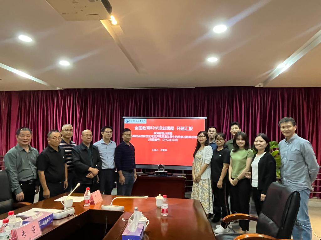 10月10日下午,由我校商贸学院何景师副教授主持的全国教育科学规划课题教育部重点课题《高等职业教育在区域经济高质量发展中的贡献与影响机制》开题论证会在立德楼B415举行。2023全国教育科学规划课题共立项课题524项,其中职校共立项18项。开题会议邀请了以中山职业技术学院欧阳育良教授为组长的7位教授担任论证专家。商贸学院颜汉军院长、课题组成员及科研处工作人员参加了会议。开题论证会议由科研处陈永刚副处长主持。