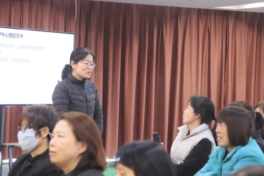褚成静老师介绍了心理健康的表现,心理危机诱因和识别,自杀的迹象及如何开展危机干预,结合高校常见的心理危机事件进行讲解,并在现场邀请学生和宿舍管理人员演绎危机情况下的干预技术。受训人员表示这样的培训很有启发。